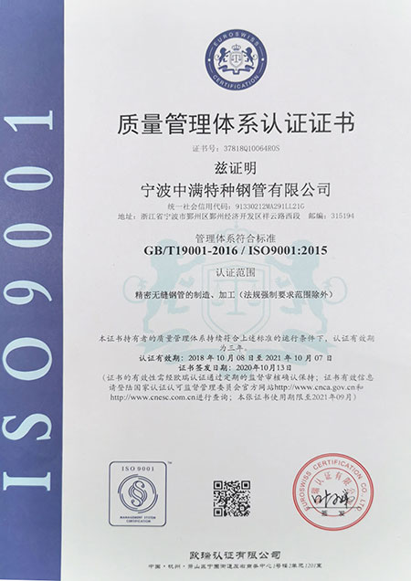 寧波中滿特種鋼管有限公司是一家專業生產精密光亮無縫鋼管、碳結鋼無縫鋼管、合金鋼管、異型鋼管、方管、六角鋼管、無氧光亮退火精密鋼管、汽車零部件用精密無縫鋼管、高壓膠管管芯用精密管。材質:10#、15#、20#、35#、45#、55#、20Cr#、40Cr#、16 Mn#、25Mn#、Q345D、15CrMo#、20CrMo#、30CrMo#、35CrMo#、42CrMo#、20CrMnTi#、20CrNiMo#、SCM420H#、SAE8620H#等合金鋼,美標、德標、日標等材質可按需定制!